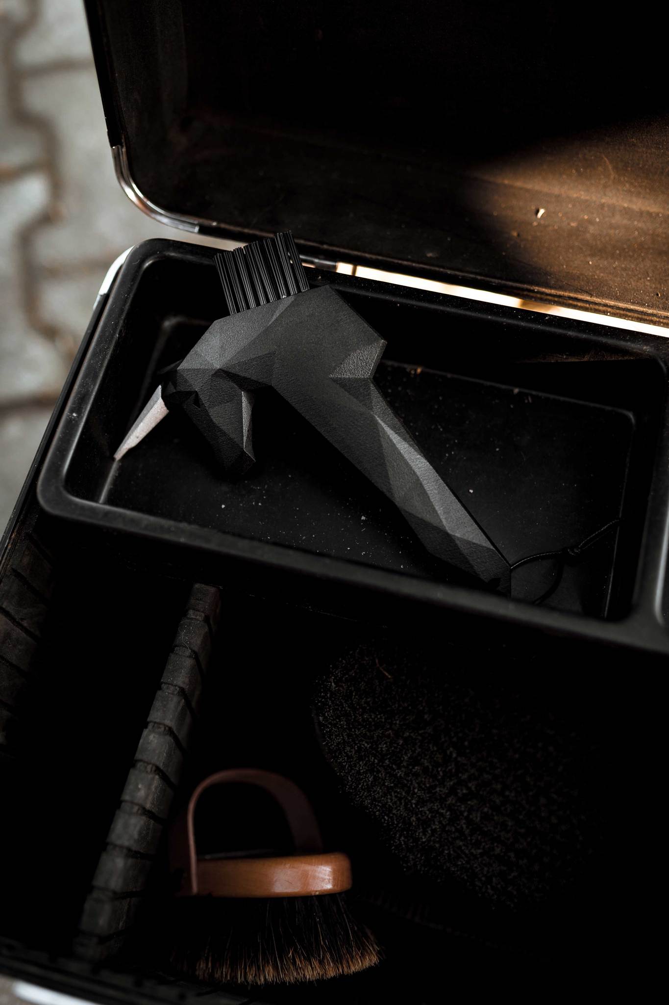 Der Bürstenkopf unseres Goodsmith Collection Hufauskratzers ist besonders abriebfest. Die Kunststoffborsten befinden sich in schmaler Anordnung und lassen somit ein gründliches Ausbürsten der Strahlfurchen zu. Auch Beschläge lassen sich ideal reinigen.