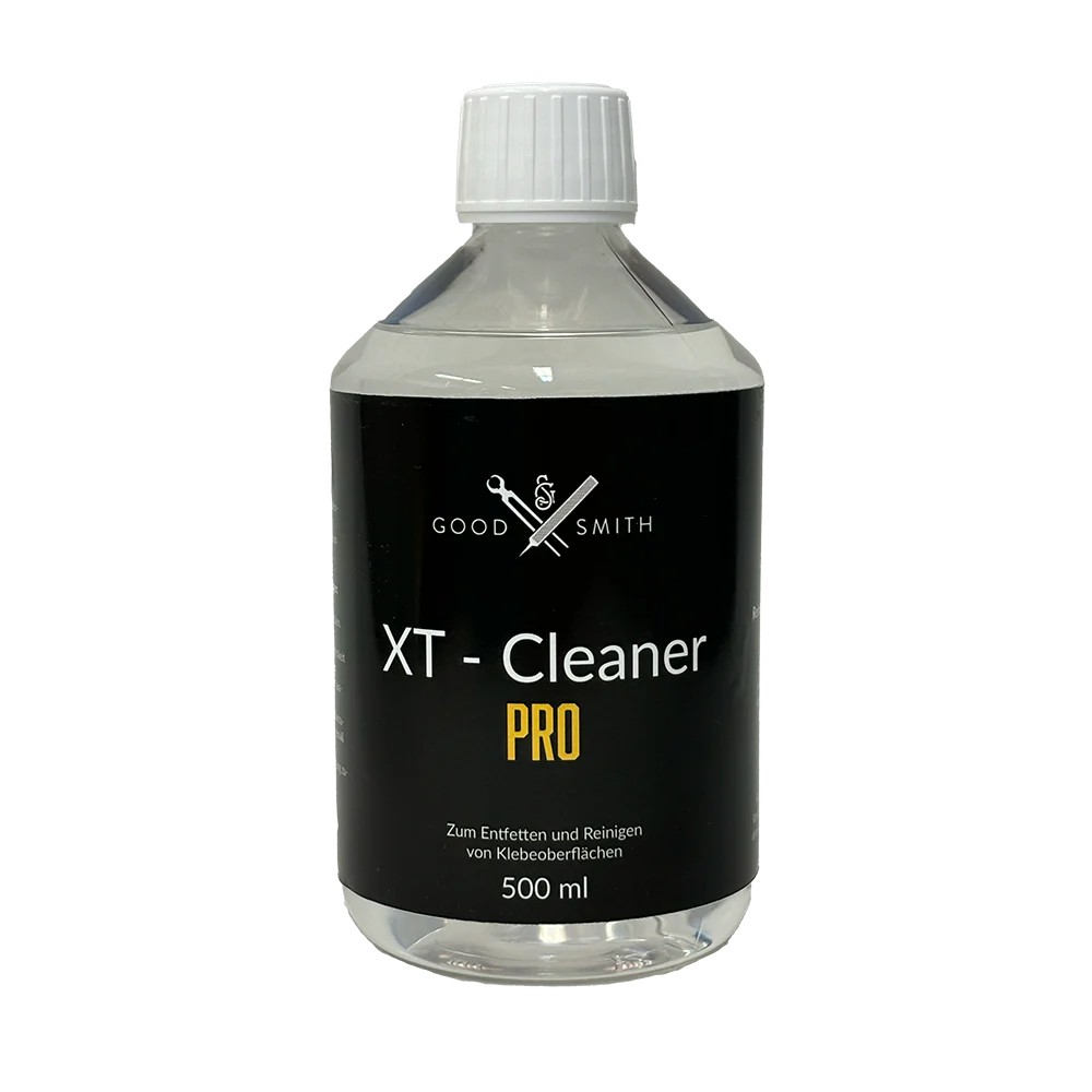 Unser Goodsmith Cleaner XT dient zur Vorbereitung der Laschen & Hufe bei der Verarbeitung unserer Perma XT Laschenkrägen. Im Anschluss an die reguläre Hufbearbeitung und vor dem Verkleben der Klebelaschen wird der Huf sowie die Laschenfinger mit unserem XT-Cleaner gereinigt und entfettet.